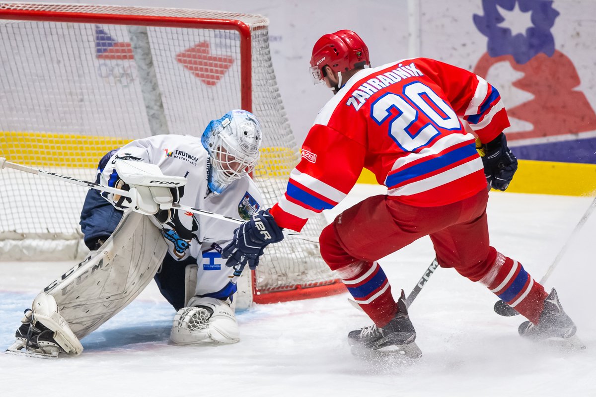 V úvodu třetího dějství jsme hráli dvě po sobě jdoucí přesilové hry 5 na 3 a obě jsme dokázali proměnit. Nejdříve se trefil střelou do horního růžku Zahradník, poté těsně před koncem dvojnásobné výhody využil clony před brankářem Kostka. Následně jsme nabídli dvě početní výhody domácímu týmu, ale obrana v čele se spolehlivě chytajícím Saifrem obě oslabení přestála bez úhony. V 51. minutě zafungovala opět naše přesilovka, po nahození od modré se dorážkou z brankoviště trefil Zahradník. Následovala, jak jinak, další vyloučení na obou stranách, při hře 4 na 4 se vytáhl výstavním zákrokem lapačkou Saifr a udržel tak náskok do závěru zápasu. V 57. minutě se přesto domácí radovali ze snížení, po ukončené přesilovce se k několika dorážkám na brankovišti dostal volný Vondráček. V samotném závěru se Trutnov odhodlal ke hře bez brankáře, pár náznaků šancí zlikvidoval Saifr a dokonce si připsal i asistenci při brance Zahradníka, který se z vlastní třetiny trefil do opuštěné klece a završil tak svůj hattrick.