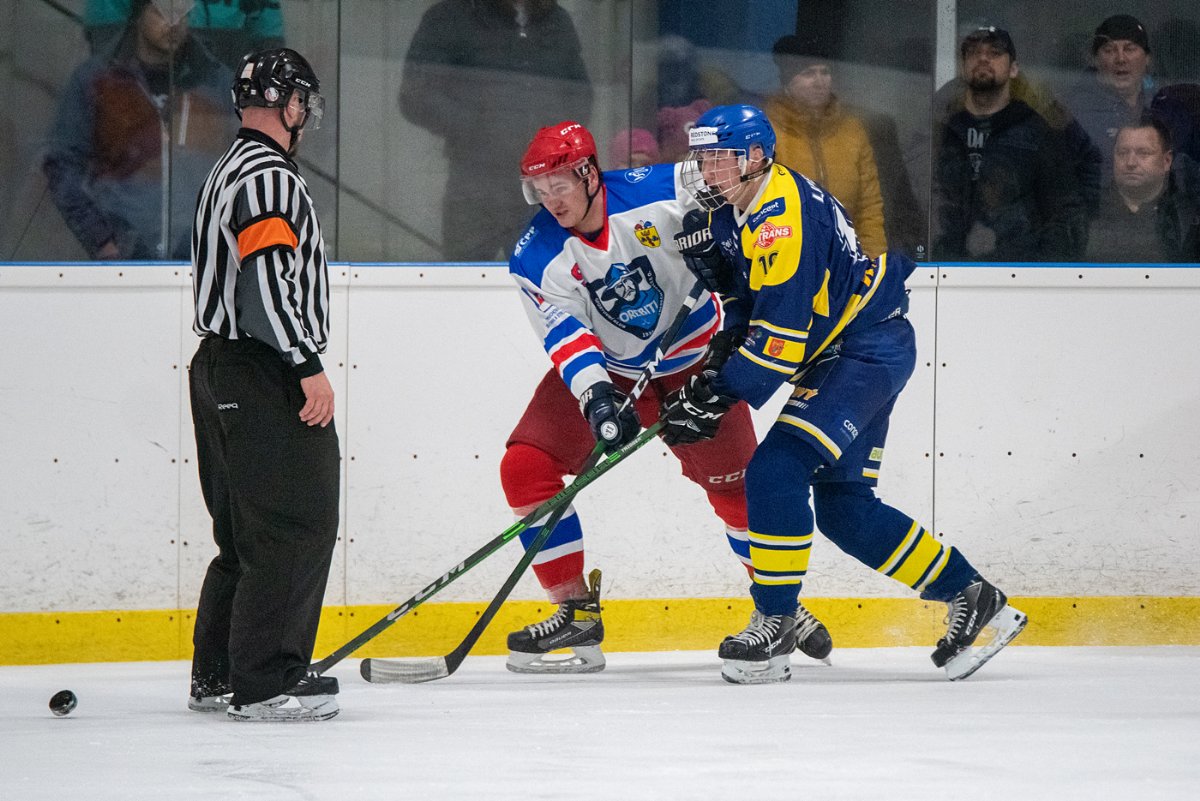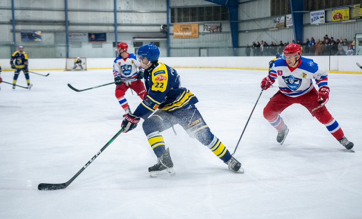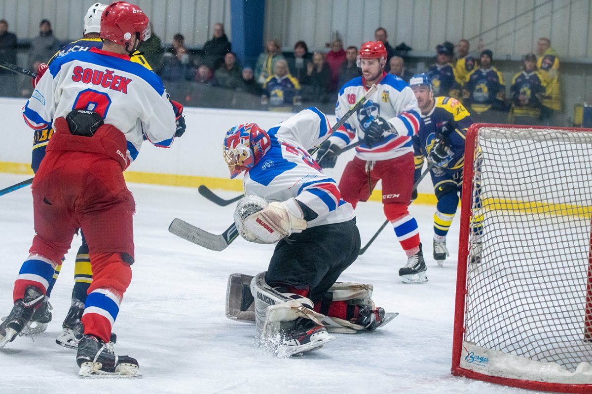 Valenta - Lipenský, Kalous, Šeda, Novák, Knytl, Novotný, Rudy - Polák, Krejza, Procházka, Pilař L., Prachař, Pulpán, Lichtág, MartinecPáteční večer přinesl dohrávku odloženého utkání s aktuálním lídrem tabulky. V úvodu utkání jsme nabídli soupeři početní výhodu, ale obrana zafungovala skvěle a nedovolila hostům ani jednu střelu na brankáře Petrů. Do první velké šance jsme se dostali v 7. minutě, Menyhárt ale trefil pouze tyčku branky a dorážka Netušila minula prázdnou branku. A z protiútoku se radovali hosté z úvodní branky, mezi kruhy jsme nepokryli Pilaře a ten se trefil přesně do horního růžku. V dalším průběhu se hrál rychlý a důrazný hokej, kdy se akce přelévaly ze strany na stranu, ale bez brankového efektu.