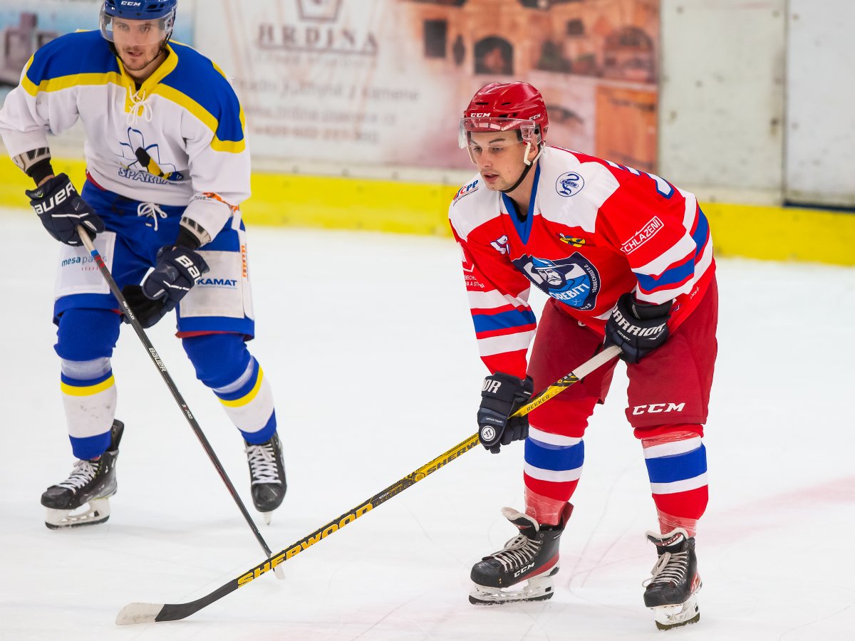 Petrů - Hanousek, Kostka, Kellner, Plíhal, Souček, Dittrich - Wolf, Drašnar T., Jušta - Netušil, Zahradník, Šeda - Sajdl, Drašnar J., Menyhárt - JavůrekHned v úvodu prvního mistrovského utkání jsme bez úhony přestáli první oslabení a v 5. minutě mohli jít do vedení, Jakub Drašnar ale ztroskotal na Bieglovi v domácí brance. V 8. minutě se ujala rychlá akce domácích, pas od levého mantinelu tečoval na brankovišti Černý. Ve 13. minutě jsme nedokázali dostat kotouč z obraného pásma, nahození na branku tečoval mimo dosah brankáře Petrů na brankovišti volný Petr. Ve 14. minutě jsme se dostali do přečíslení 2 na 1, za záchranou brzdu zatáhl Pohl. Nařízené trestné střílení Tomáš Drašnar zakončil pouze do betonu Biegla. Další faul domácího týmu jsme již potrestali, střela Kellnera z levého kruhu skrze clonící hráče zapadla přesně k tyčce. Ihned po rozehrání jsme byli nedůrazní na svém brankovišti a inkasovali velmi lacinou branku, jako střelec byl označen Hynek. V 18. minutě po rychlém výpadu do útočného pásma střílel Hynek z levého kruhu přesně do protilehlého růžku a zvyšoval již na 4:1.
