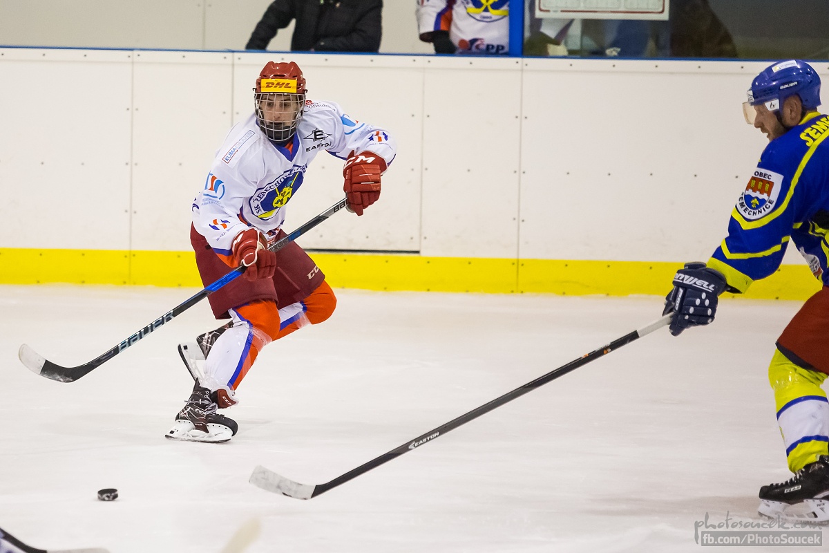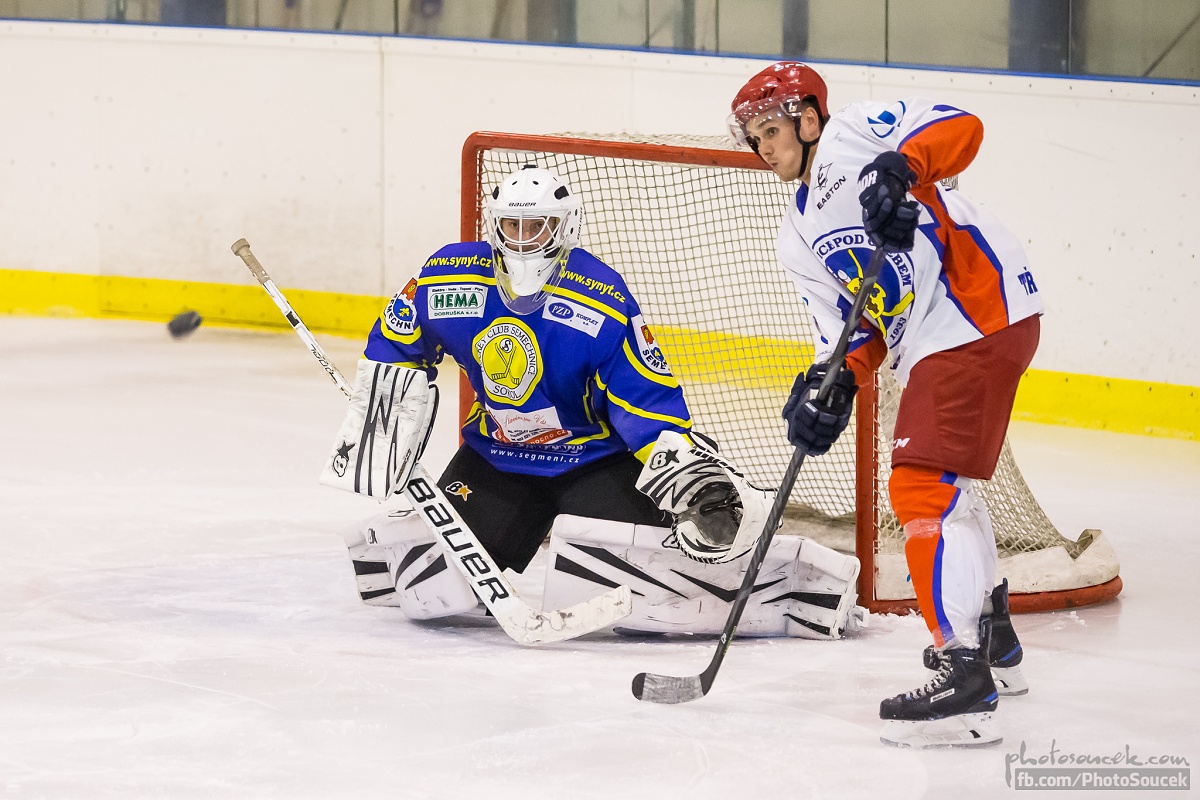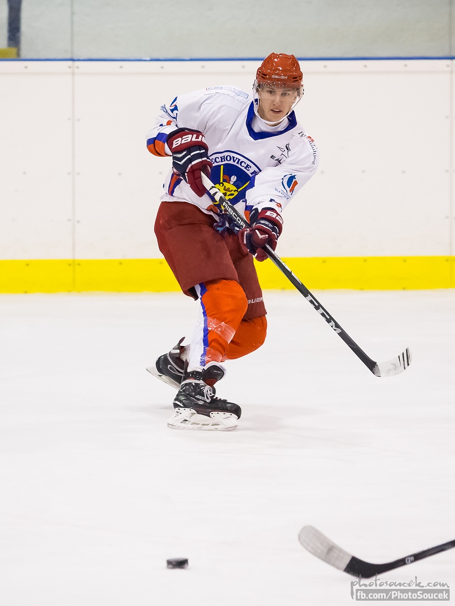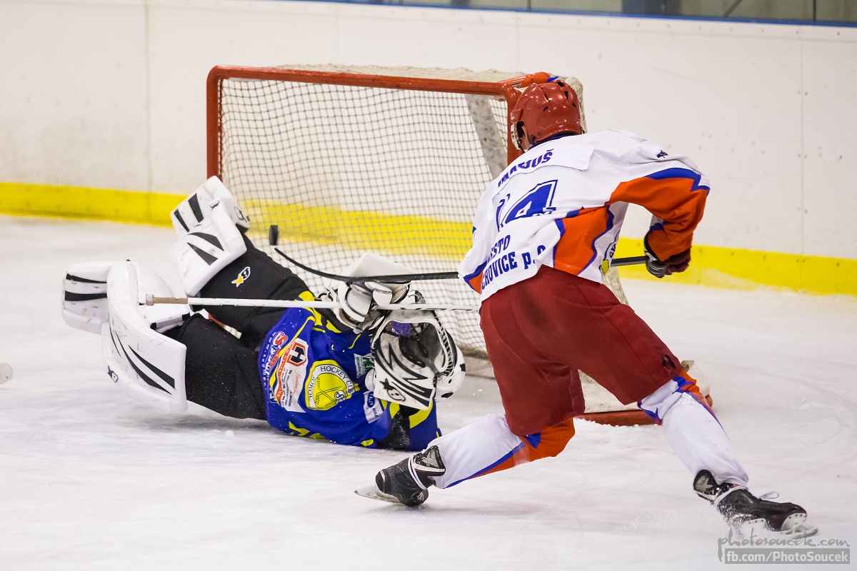 Mráček - Zima, Krištof, Jičínský, Ježík - Vencl, Lukášek, Čapek, Cvejn, Bury, Halkička, Frýda, RejchrtV další přesilovce zatáhl kotouč z vlastního pásma J. Drašnar a Matouš jeho nabídku před branku proměnil tečí mimo dosah brankáře Mráčka. V 16. minutě měl potvrzení náskoku na své holi Wolf, jeho střela se ale otřela pouze o horní tyčku.