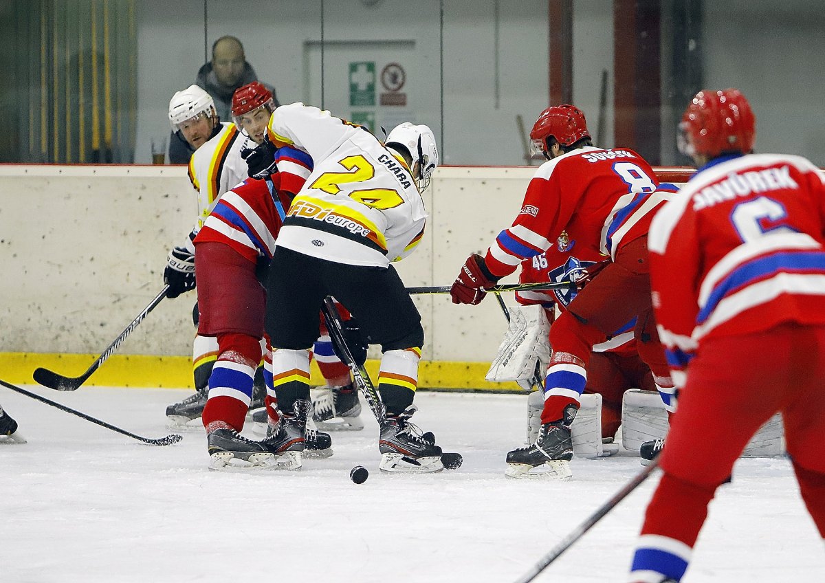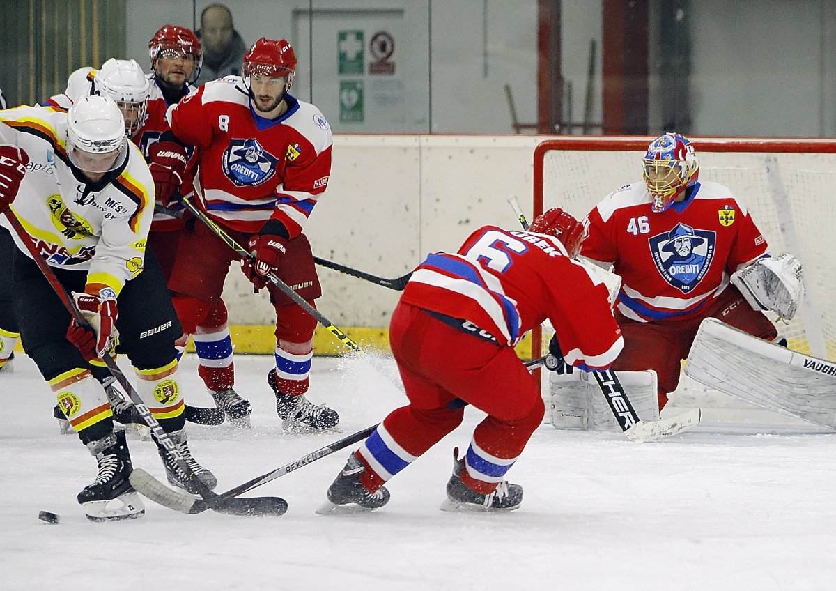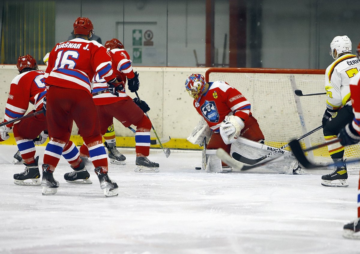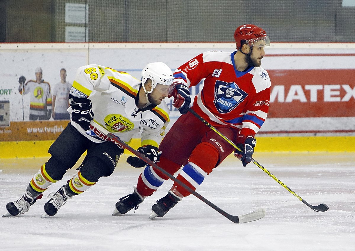Petrů (21. Vaněk) - Veselý, Kostka, Hanousek, Mlateček, Souček, Dittrich - Wolf, Drašnar T., Jušta - Netušil, Zahradník, Menyhárt - Javůrek, Drašnar J., VikPo opatrném úvodu utkání převzali otěže zápasu domácí hráči, do vedení se dostali v 5. minutě kdy na brankovišti dorážel u vzdálené tyčky nedůrazně pokrytý Chára. V 11. minutě jsme v našem obraném pásmu doslova nabídli kotouč domácím hráčům, chybu potrestal střelou z kruhu Brožek. V 16. minutě jsme dokázali využít první přesilovou hru, po vyhraném vhazování v pásmu střílel od modré přesně Souček. V téže minutě jsme dokázali srovnat stav na 2:2, Vik z vrcholku kruhu překvapil Veselého v domácí brance střelou zpoza obránce. Také domácí tým proměnil svoji první početní výhodu, ze středního pásma rozjetý Černý z kruhu pro vhazování prostřelil brankáře Petrů. Pro toho zápas skončil po první třetině poté, co se v samotném závěru při pokusu o rozehrávku srazil s dotírajícím domácím hráčem.