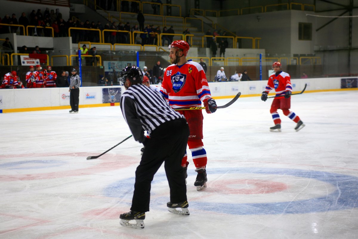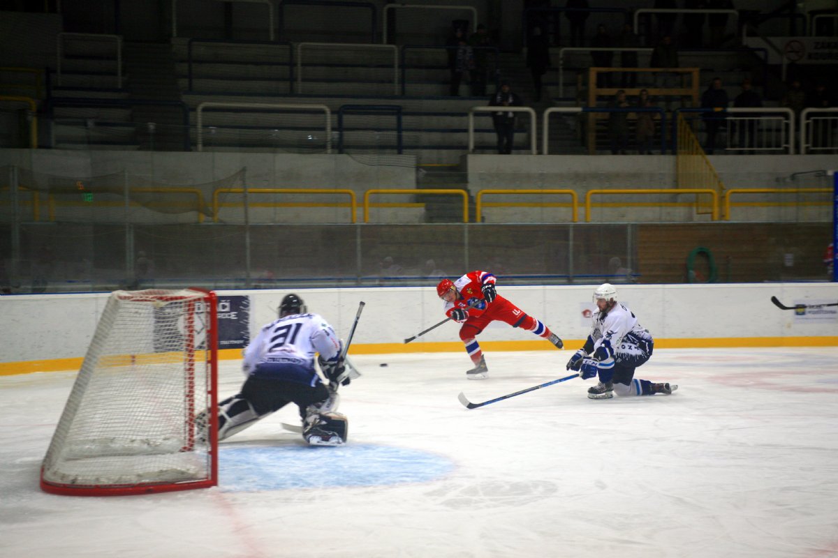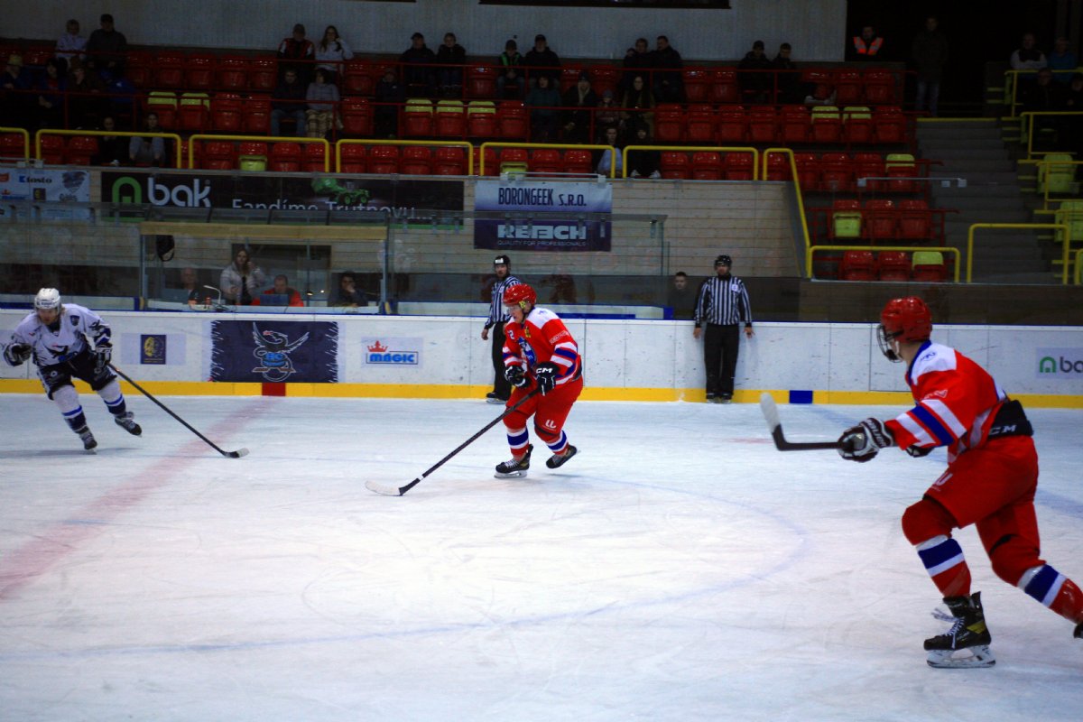 Petrů - Veselý, Kostka, Mlateček, Hanousek, Plíhal, Dittrich, Souček - Wolf, Drašnar T., Jušta - Menyhárt, Sajdl, Šeda - Kellner, Drašnar J., VikVstup do zápasu se nám hrubě nepovedl a hned v první minutě jsme po chybě v obranném pásmu inkasovali, nahození takřka z brankové čáry Šimoníčka překvapilo brankáře Petrů. Domácí tak získali patřičné sebevědomí a to se jim ještě zvedlo ve 4. minutě. Po jednoduchém nahození na branku od modré se následný pokus o rozehrání odrazil od dotírajícího Šimoníčka za brankovou čáru. Do hry jsme se dostali až v první přesilové hře, kterou jsme dokázali využít dorážkou na brankovišti v podání Wolfa. Hra se tak vyrovnala a oba týmy si dokázaly vytvořit několik náznaků šancí, ujala se ale pouze ta v 18. minutě, kdy jsme propadli na útočné modré a následné přečíslení 2 na 1 proměnil Mach střelou z levého kruhu.